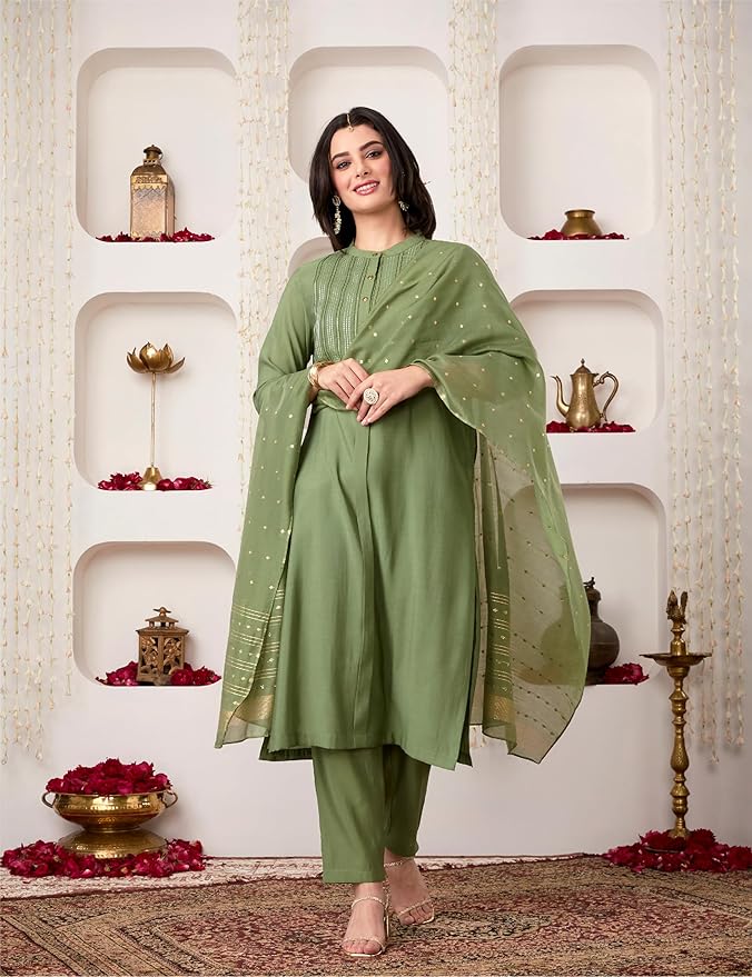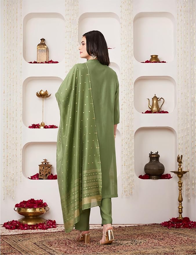 Myx Women’s Embroidered Kurta Pant Set with Dupatta